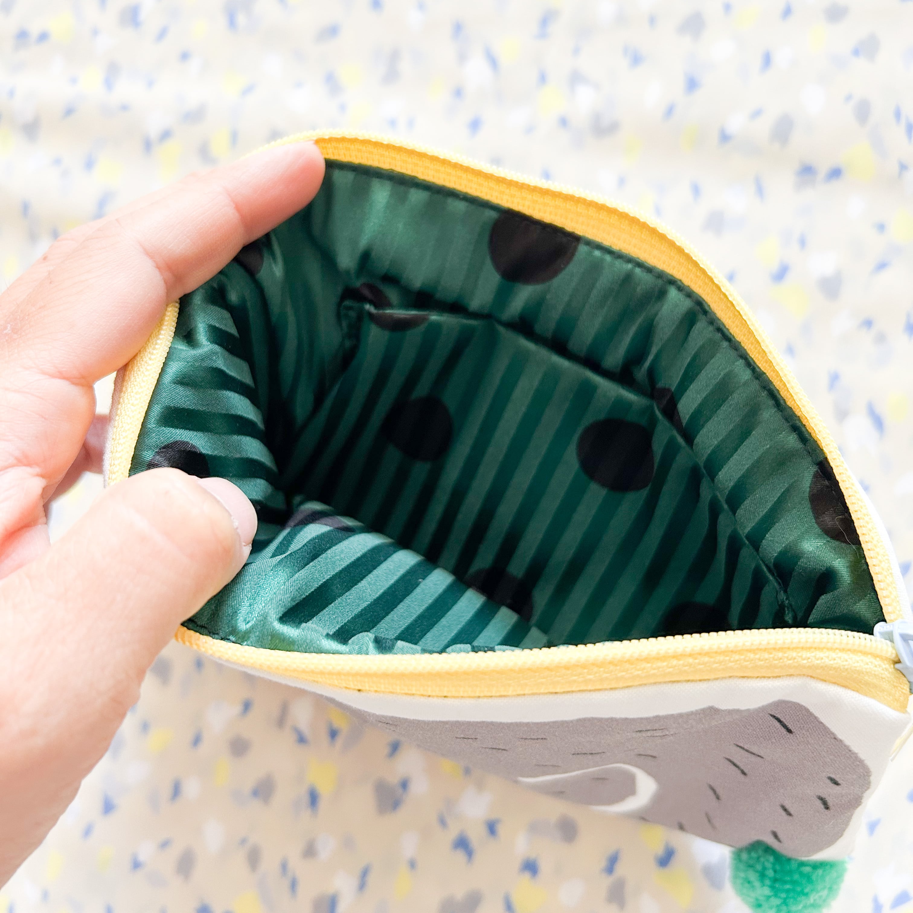 かわいらしい猫型のデザインは、神谷可奈子さんが手掛けた特別な逸品です。大人気のグレーねこポーチは、持ち運ぶのが楽しくなるサイズ感で、日常使いにぴったりです。