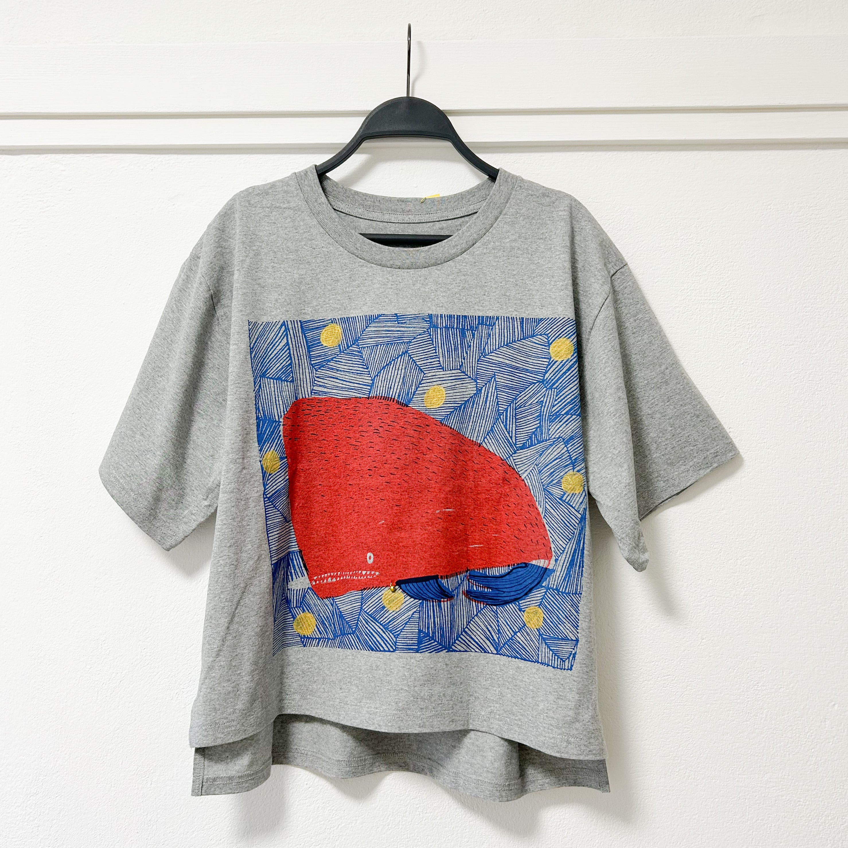 エモエモTシャツは、神谷可奈子デザインによるオリジナルアイテム。独自のハンドプリントで施したプリントが、個性的なスタイリングを叶えてくれます。しっかりとした生地感と程よいゆったり感が特徴で、長く愛用できる一枚です。後ろが長くなっておりお尻も隠れます。