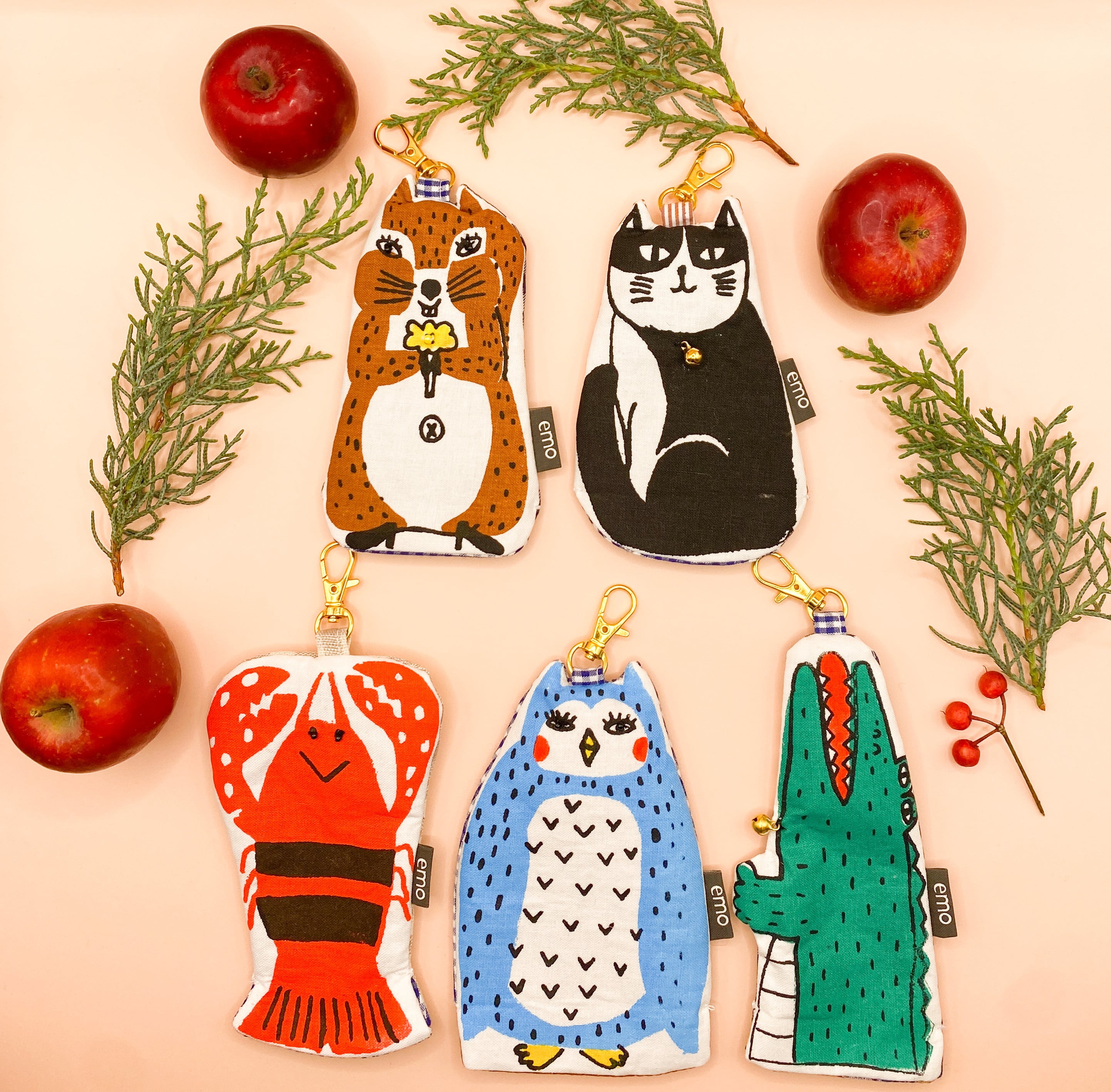 かわいい猫。ザリガニ、リス、ワニ、フクロウのカバンに付けられるキーケースです。