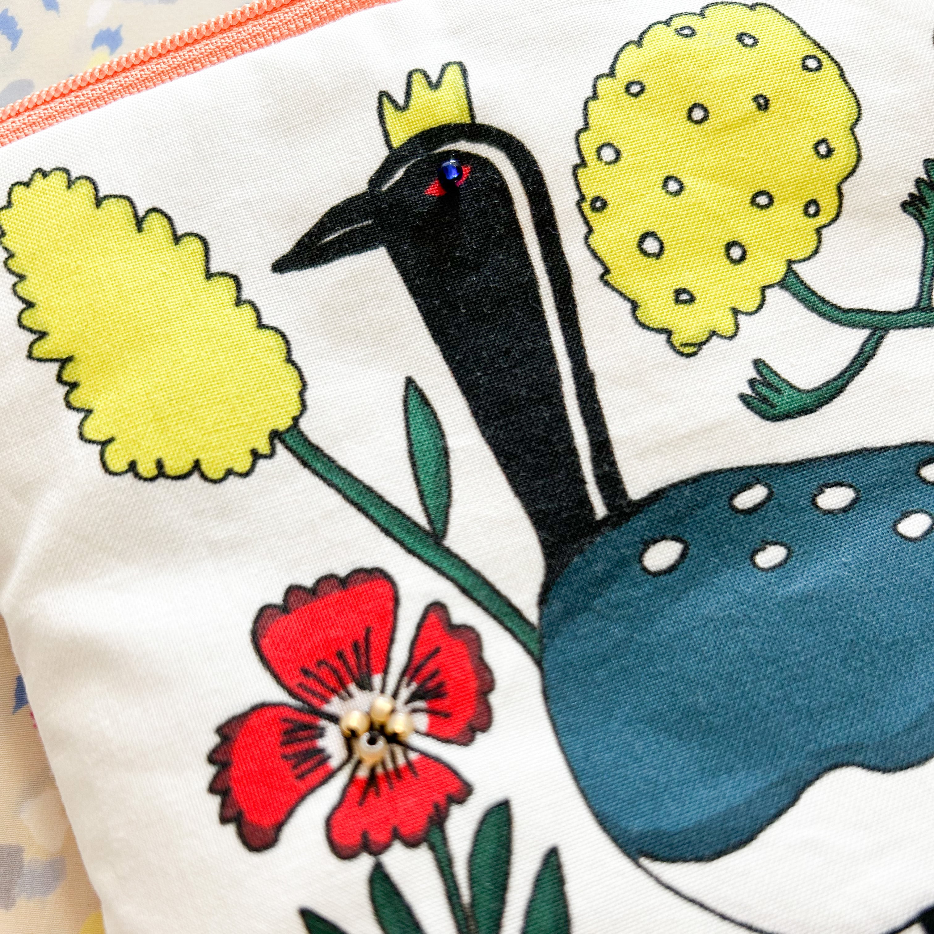 このポーチは、愛らしいエミューのデザインが特徴で小物をしっかりと守ります!メイク道具や貴重品を収納するのにぴったりなサイズ感で、日常使いから特別な日まで幅広く活躍します。