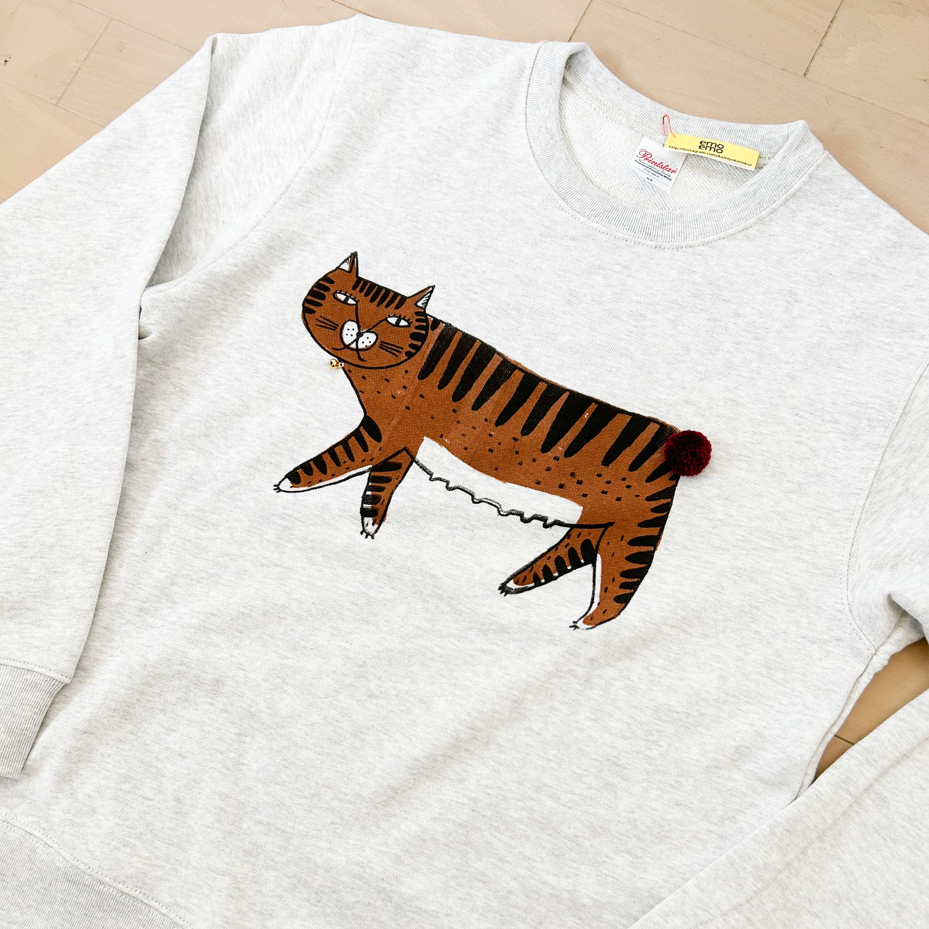 このトレーナーは、かわいい猫のデザインが特徴で、シルクスクリーンによる1枚1枚手刷り仕上げとなっています!暖かく、リラックスしたい日常からおしゃれを楽しみたい特別な日まで、幅広くご利用いただけるアイテムです。